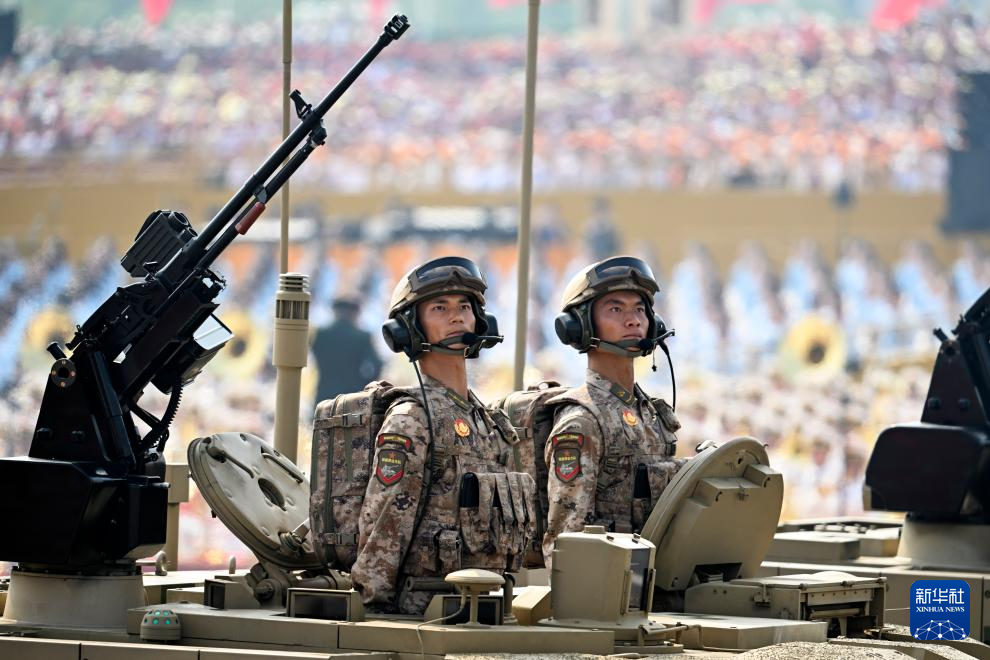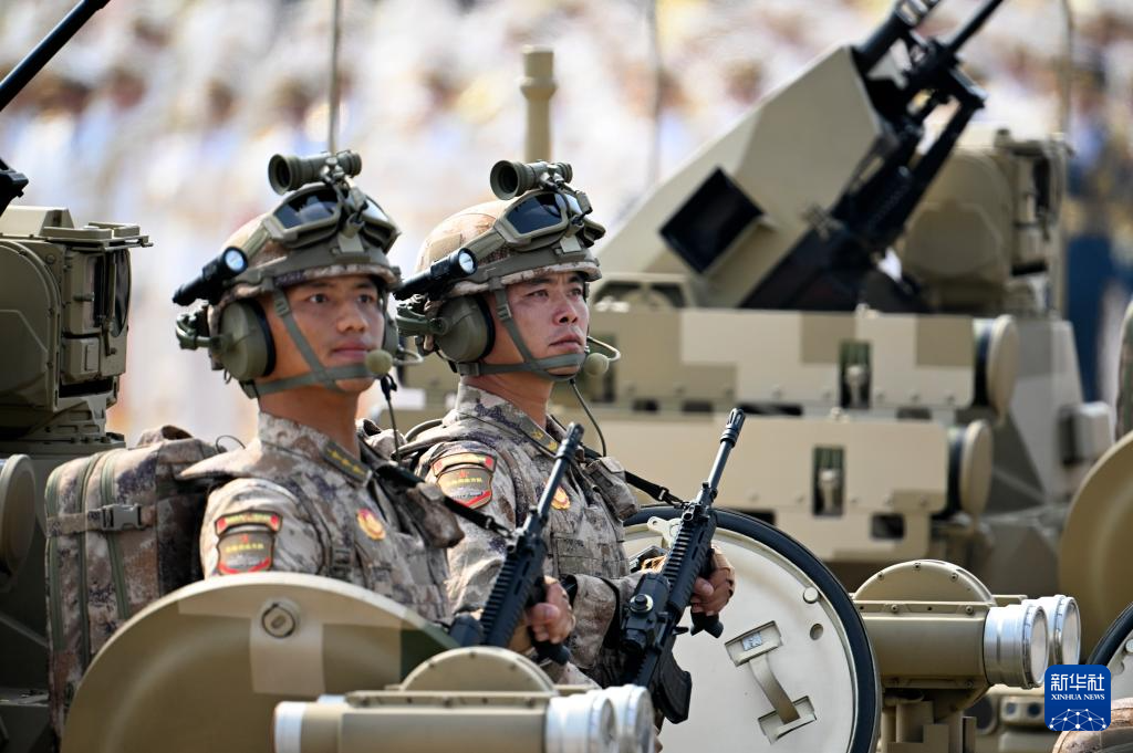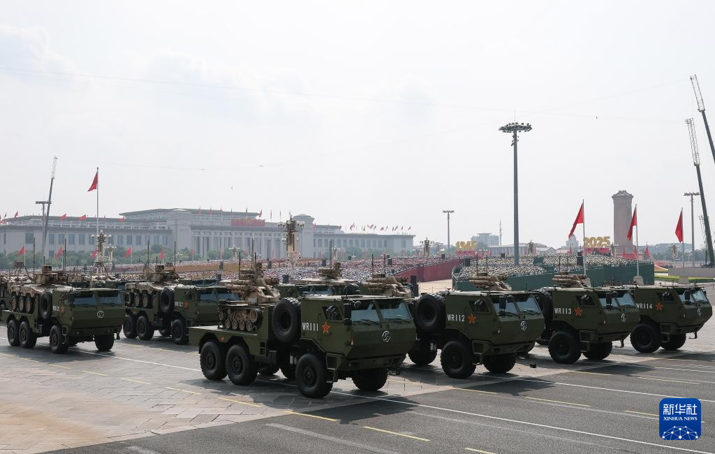 9月3日,紀(jì)念中國人民抗日戰(zhàn)爭暨世界反法西斯戰(zhàn)爭勝利80周年大會(huì)在北京隆重舉行。這是電子對(duì)抗方隊(duì)接受檢閱。