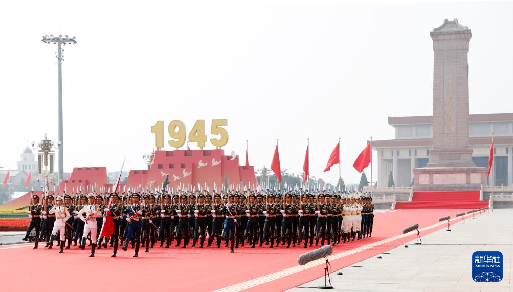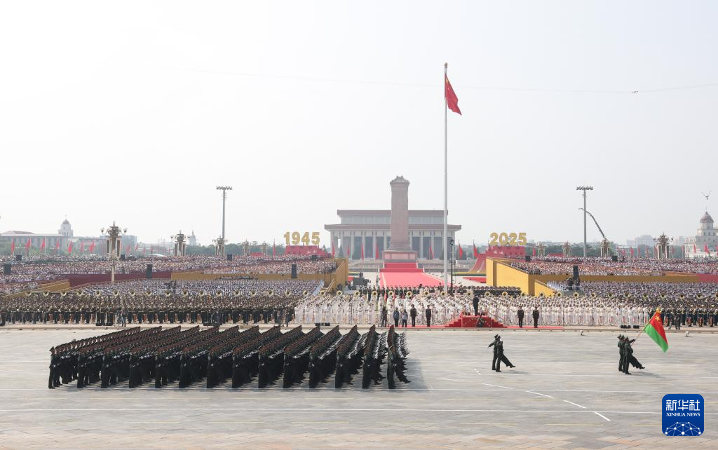 9月3日,紀(jì)念中國人民抗日戰(zhàn)爭暨世界反法西斯戰(zhàn)爭勝利80周年大會(huì)在北京隆重舉行。這是中國人民解放軍儀仗方隊(duì)走過天安門廣場。