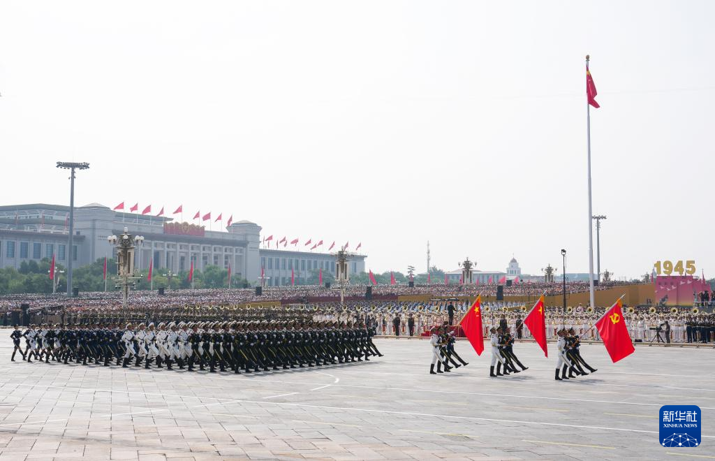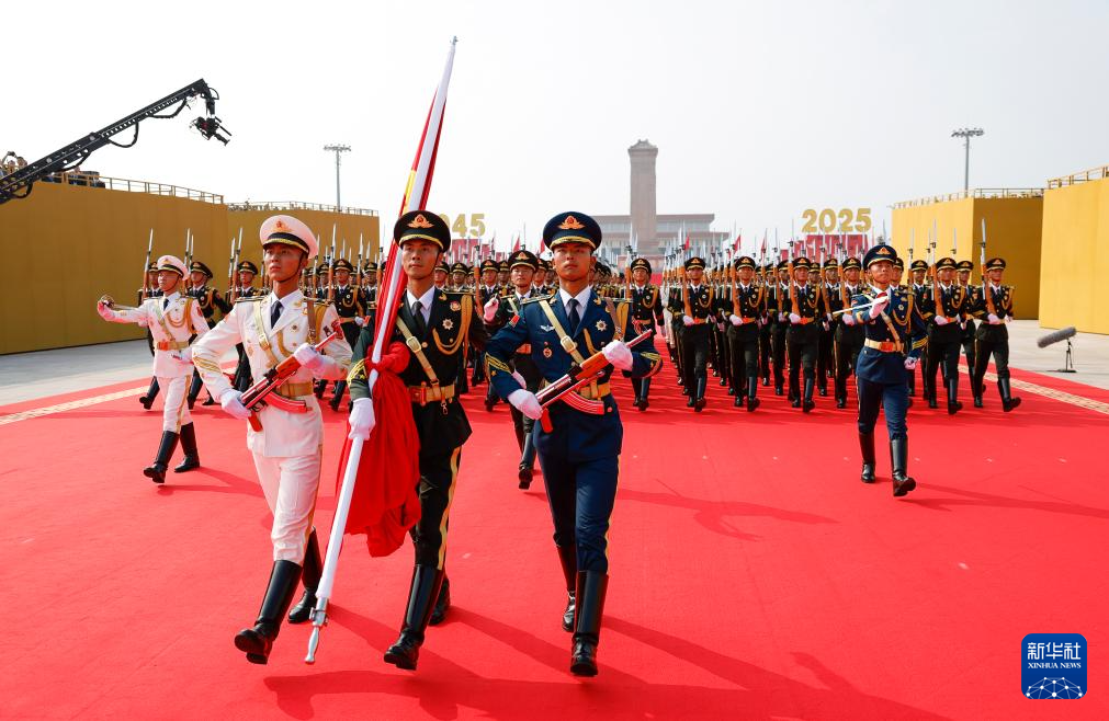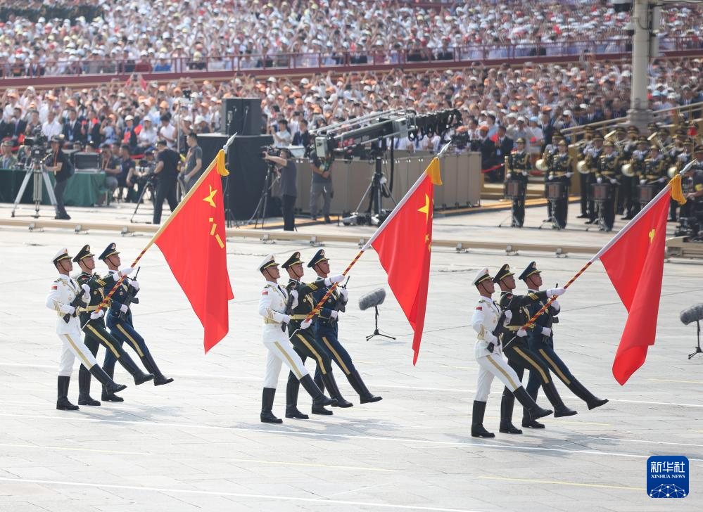 9月3日,紀(jì)念中國人民抗日戰(zhàn)爭暨世界反法西斯戰(zhàn)爭勝利80周年大會(huì)在北京隆重舉行。這是國旗護(hù)衛(wèi)隊(duì)在行進(jìn)中。