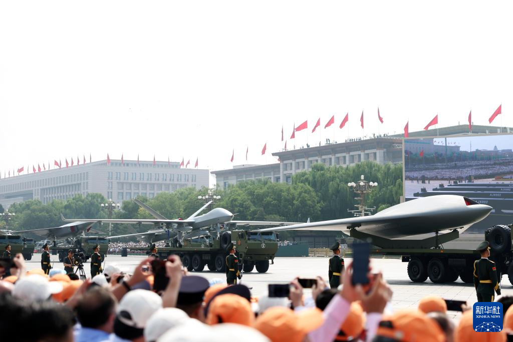 9月3日,紀(jì)念中國人民抗日戰(zhàn)爭暨世界反法西斯戰(zhàn)爭勝利80周年大會(huì)在北京隆重舉行。這是空中無人作戰(zhàn)方隊(duì)接受檢閱。
