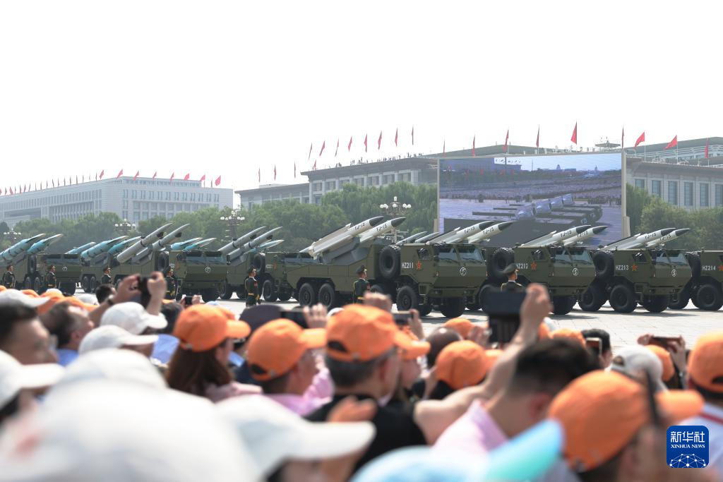 9月3日,紀(jì)念中國人民抗日戰(zhàn)爭暨世界反法西斯戰(zhàn)爭勝利80周年大會(huì)在北京隆重舉行。這是反艦導(dǎo)彈方隊(duì)接受檢閱。
