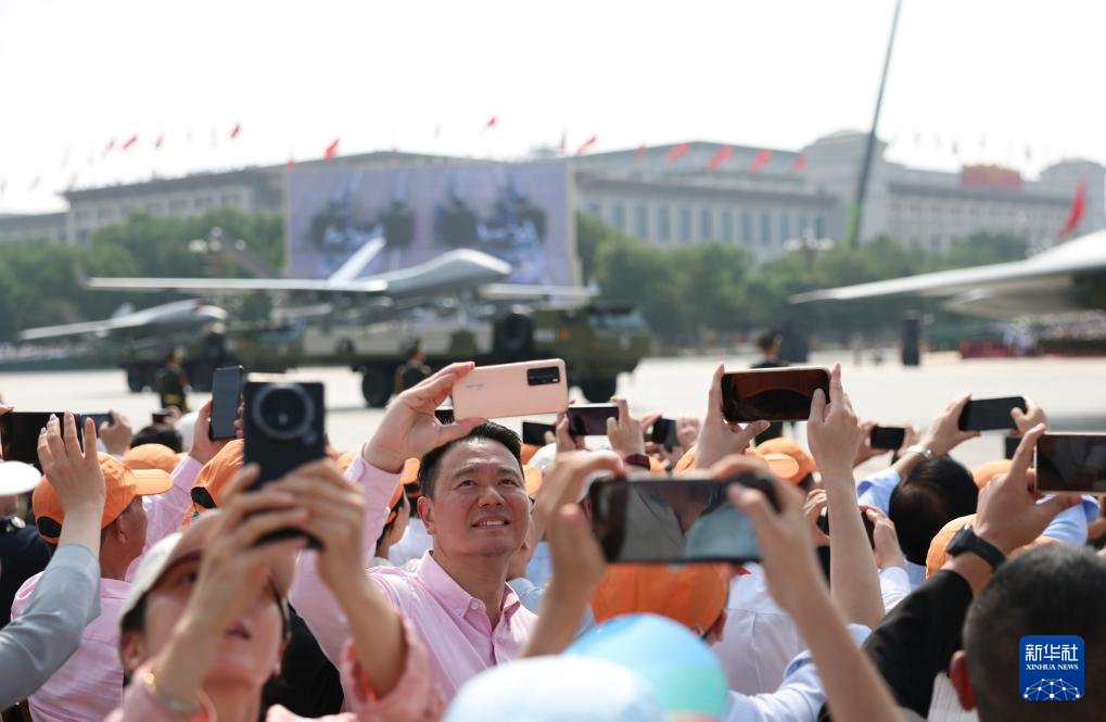9月3日,紀(jì)念中國人民抗日戰(zhàn)爭暨世界反法西斯戰(zhàn)爭勝利80周年大會(huì)在北京隆重舉行。這是觀禮嘉賓在拍照。
