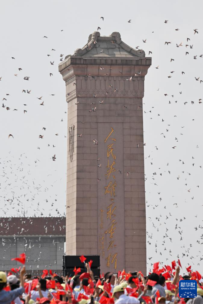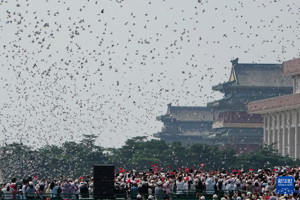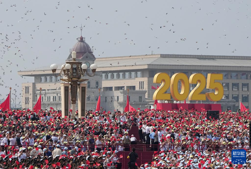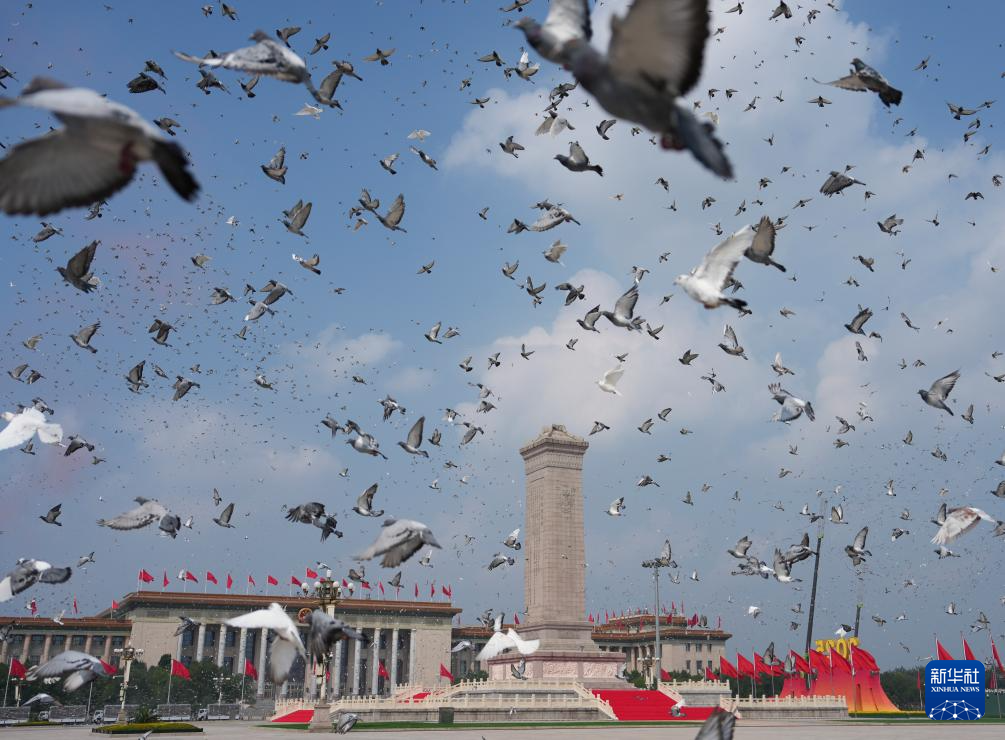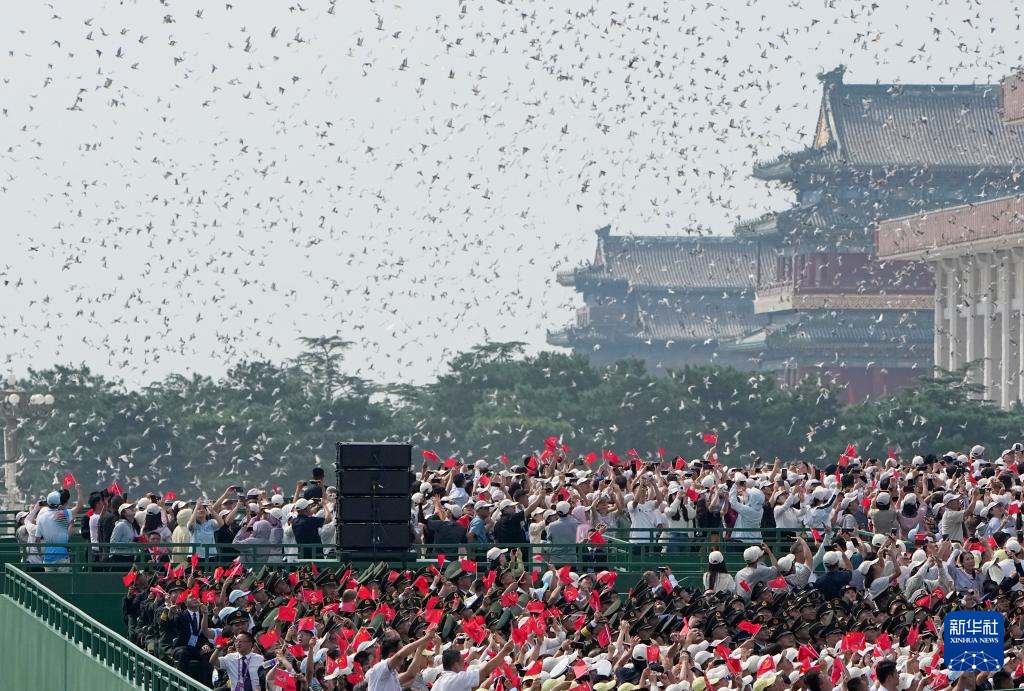 9月3日,紀(jì)念中國人民抗日戰(zhàn)爭暨世界反法西斯戰(zhàn)爭勝利80周年大會(huì)在北京隆重舉行。這是紀(jì)念大會(huì)現(xiàn)場放飛鴿子。