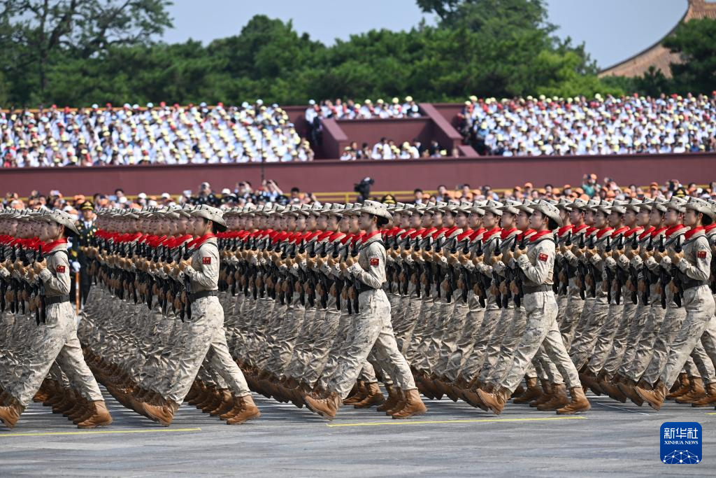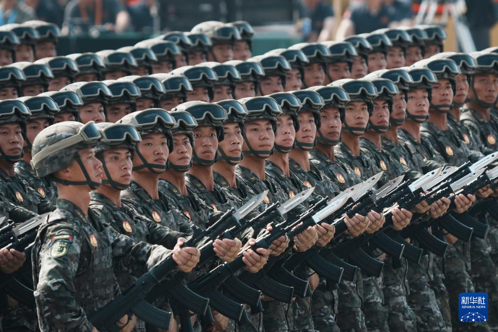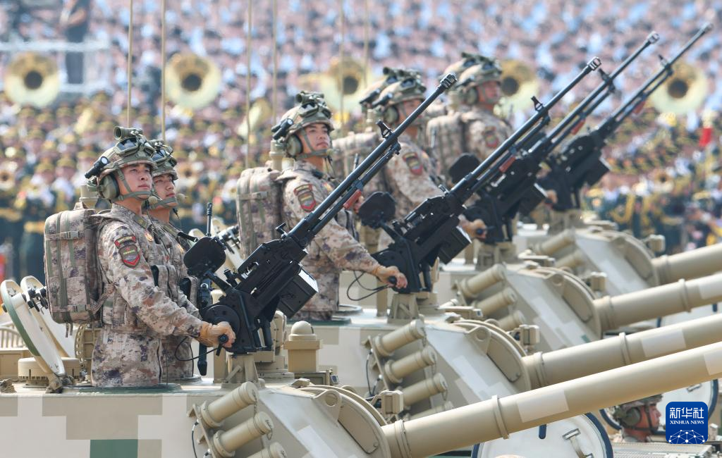 9月3日,紀(jì)念中國人民抗日戰(zhàn)爭暨世界反法西斯戰(zhàn)爭勝利80周年大會(huì)在北京隆重舉行。這是地面突擊方隊(duì)接受檢閱。