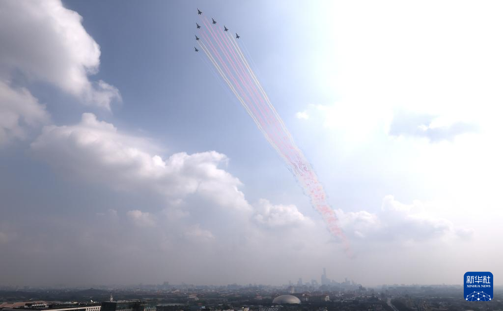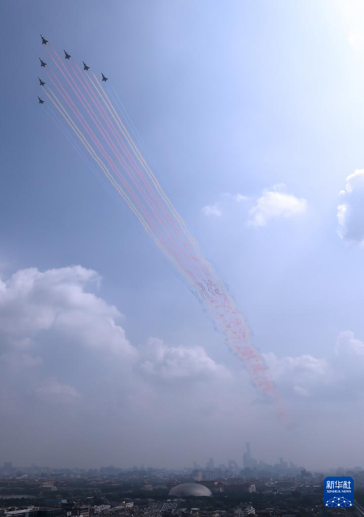 9月3日,紀(jì)念中國人民抗日戰(zhàn)爭暨世界反法西斯戰(zhàn)爭勝利80周年大會(huì)在北京隆重舉行。這是教練機(jī)梯隊(duì)。