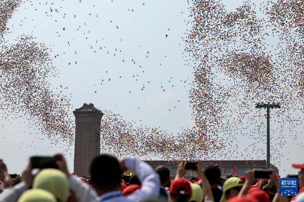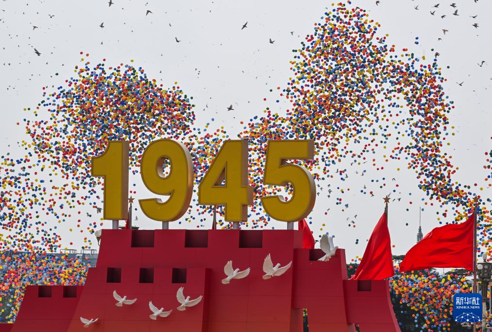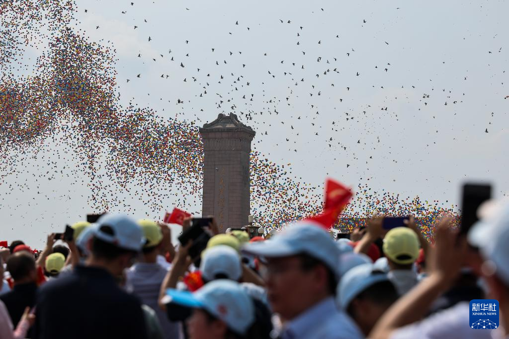 9月3日,紀(jì)念中國人民抗日戰(zhàn)爭暨世界反法西斯戰(zhàn)爭勝利80周年大會(huì)在北京隆重舉行。這是紀(jì)念大會(huì)現(xiàn)場放飛氣球和鴿子。
