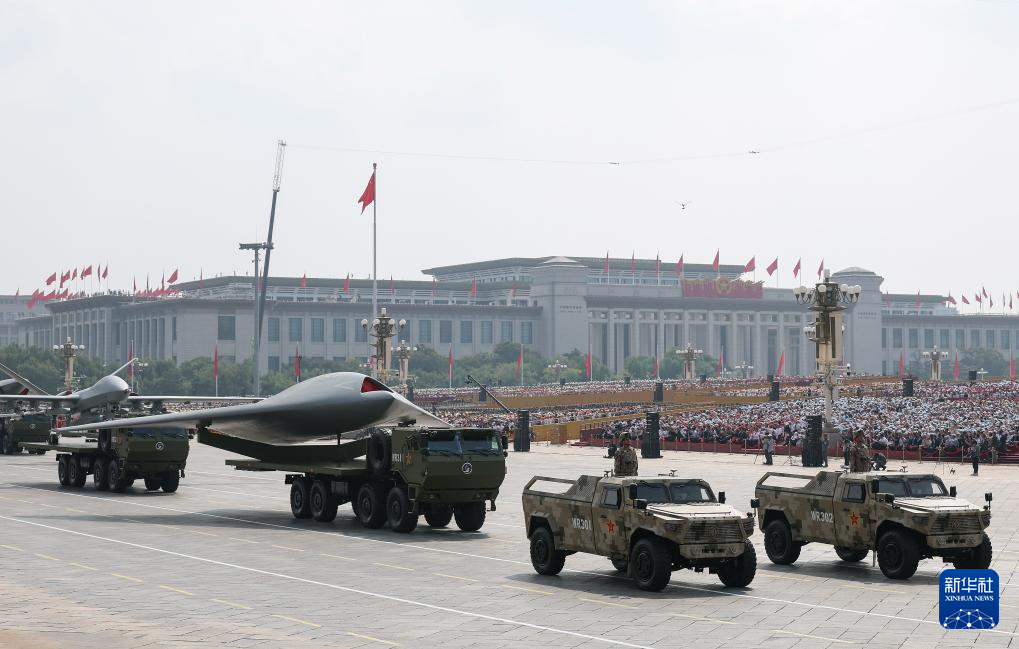 9月3日,紀(jì)念中國人民抗日戰(zhàn)爭暨世界反法西斯戰(zhàn)爭勝利80周年大會(huì)在北京隆重舉行。這是空中無人作戰(zhàn)方隊(duì)接受檢閱。