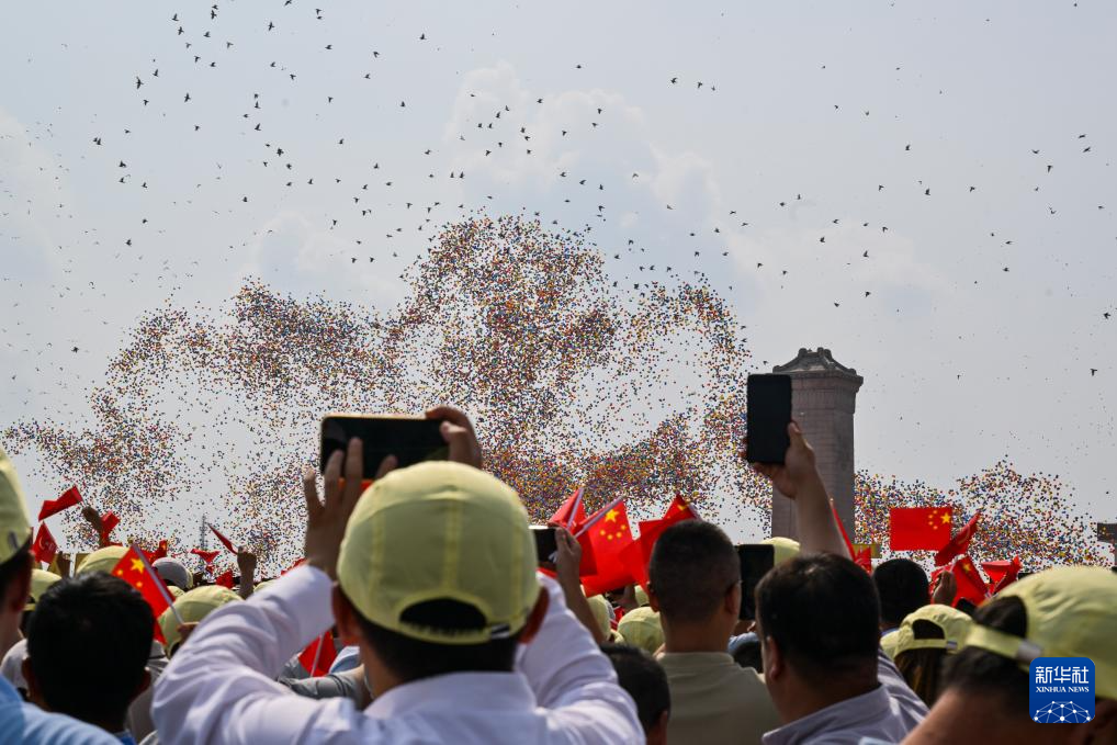 9月3日,紀(jì)念中國人民抗日戰(zhàn)爭暨世界反法西斯戰(zhàn)爭勝利80周年大會(huì)在北京隆重舉行。這是紀(jì)念大會(huì)現(xiàn)場放飛鴿子。