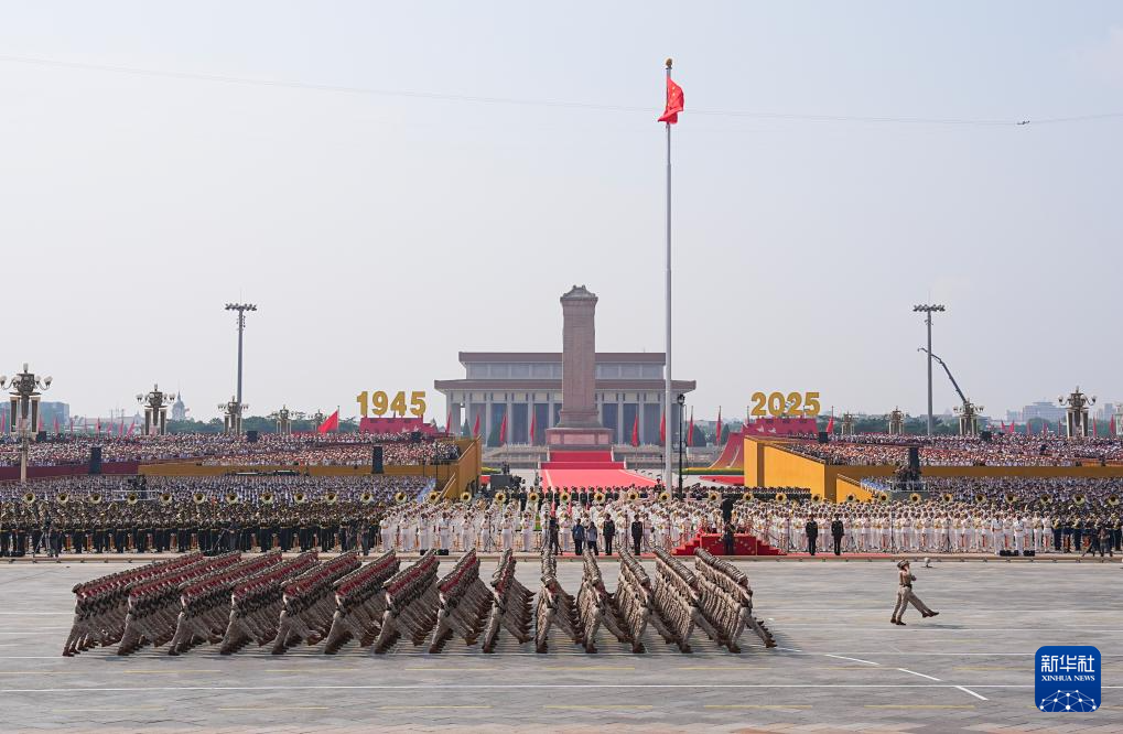 9月3日,紀(jì)念中國人民抗日戰(zhàn)爭暨世界反法西斯戰(zhàn)爭勝利80周年大會(huì)在北京隆重舉行。這是中國人民解放軍儀仗方隊(duì)走過天安門廣場。
