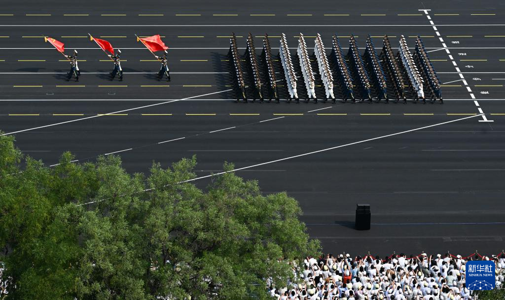 9月3日,紀(jì)念中國人民抗日戰(zhàn)爭暨世界反法西斯戰(zhàn)爭勝利80周年大會(huì)在北京隆重舉行。這是戰(zhàn)旗方隊(duì)接受檢閱。