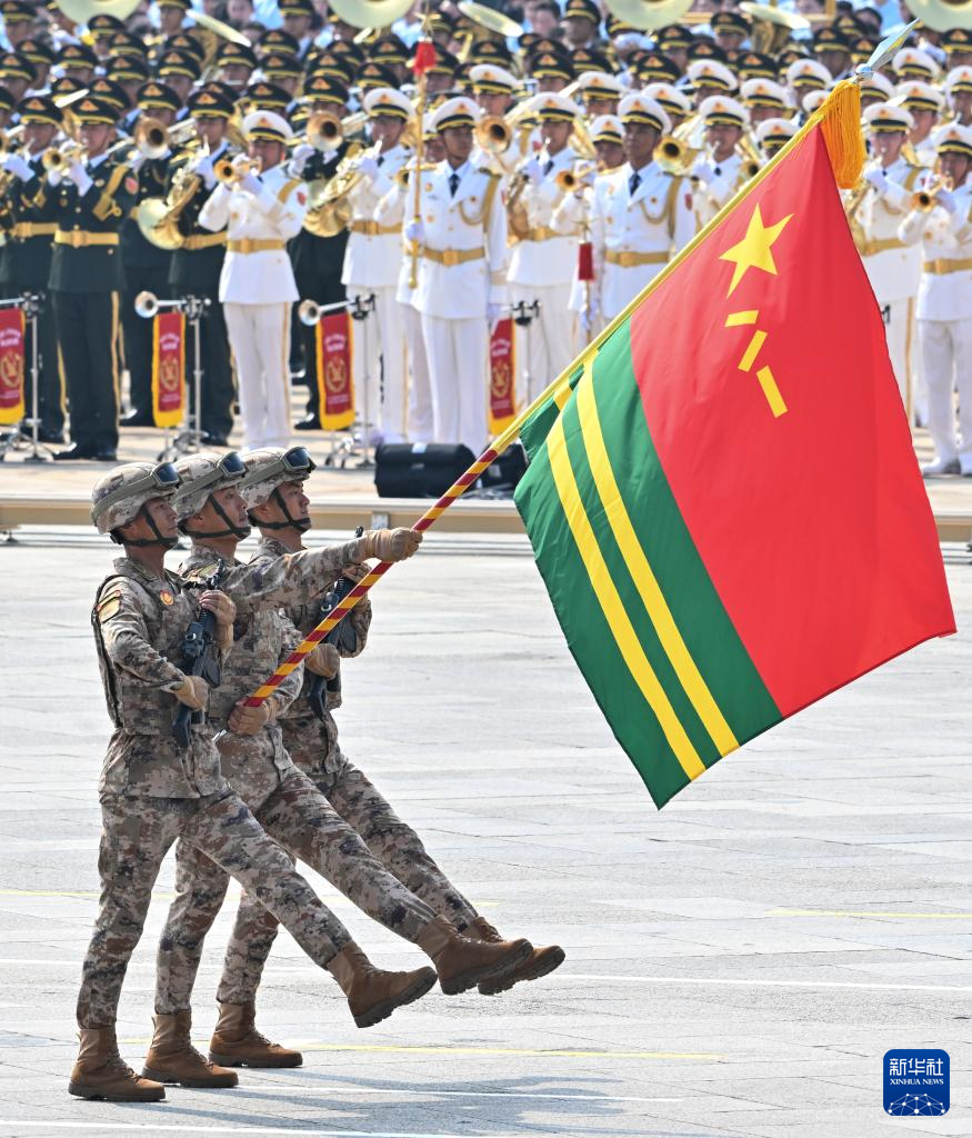 9月3日,紀念中國人民抗日戰(zhàn)爭暨世界反法西斯戰(zhàn)爭勝利80周年大會在北京隆重舉行。這是戰(zhàn)旗方隊接受檢閱。