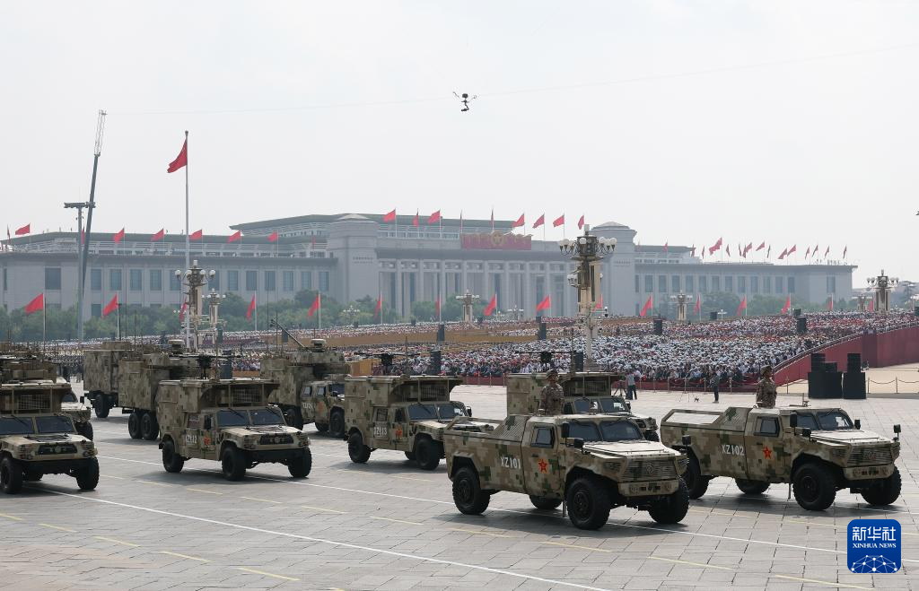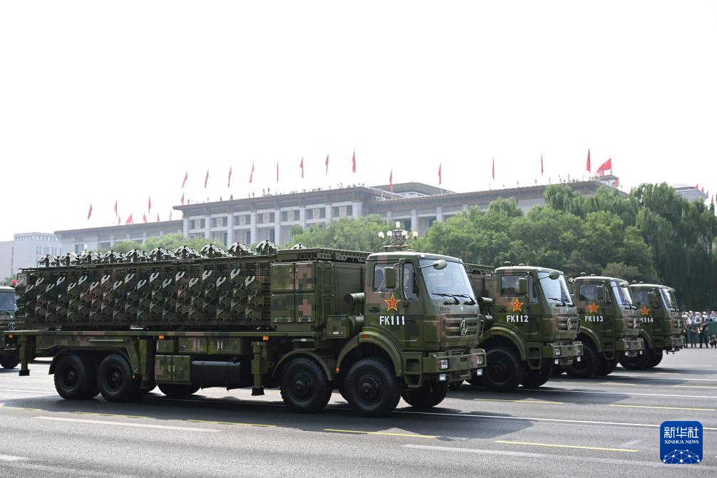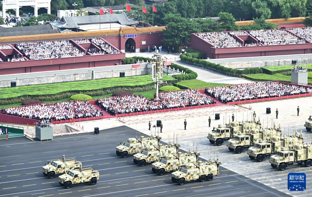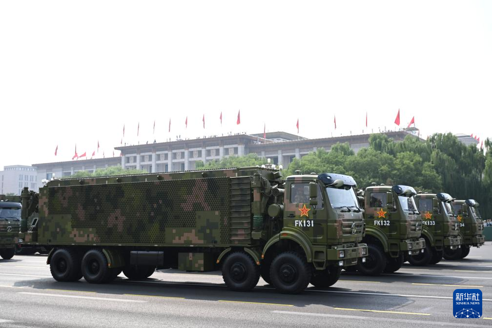 9月3日,紀念中國人民抗日戰(zhàn)爭暨世界反法西斯戰(zhàn)爭勝利80周年大會在北京隆重舉行。這是信息支援方隊通過天安門廣場。