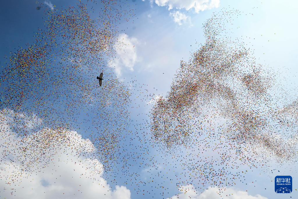 9月3日,紀念中國人民抗日戰(zhàn)爭暨世界反法西斯戰(zhàn)爭勝利80周年大會在北京隆重舉行。這是紀念大會現(xiàn)場放飛氣球和鴿子。