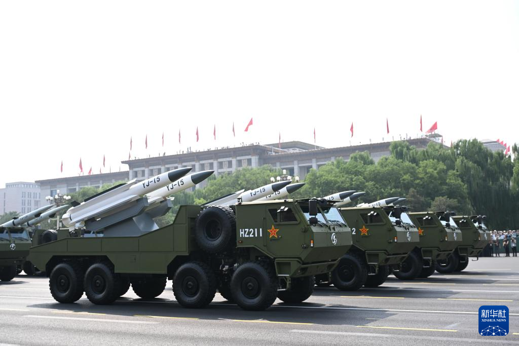 9月3日,紀念中國人民抗日戰(zhàn)爭暨世界反法西斯戰(zhàn)爭勝利80周年大會在北京隆重舉行。這是反艦導(dǎo)彈方隊接受檢閱。