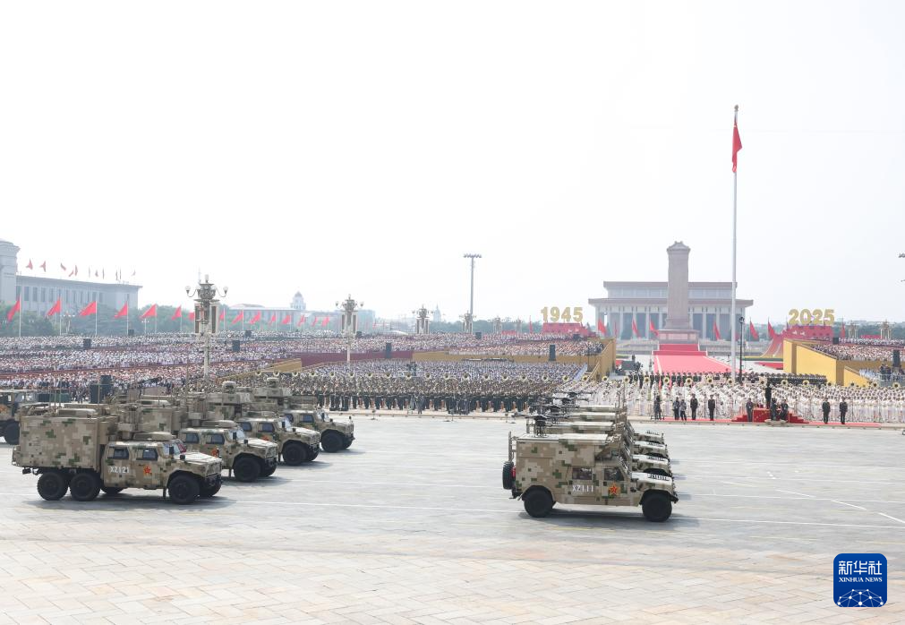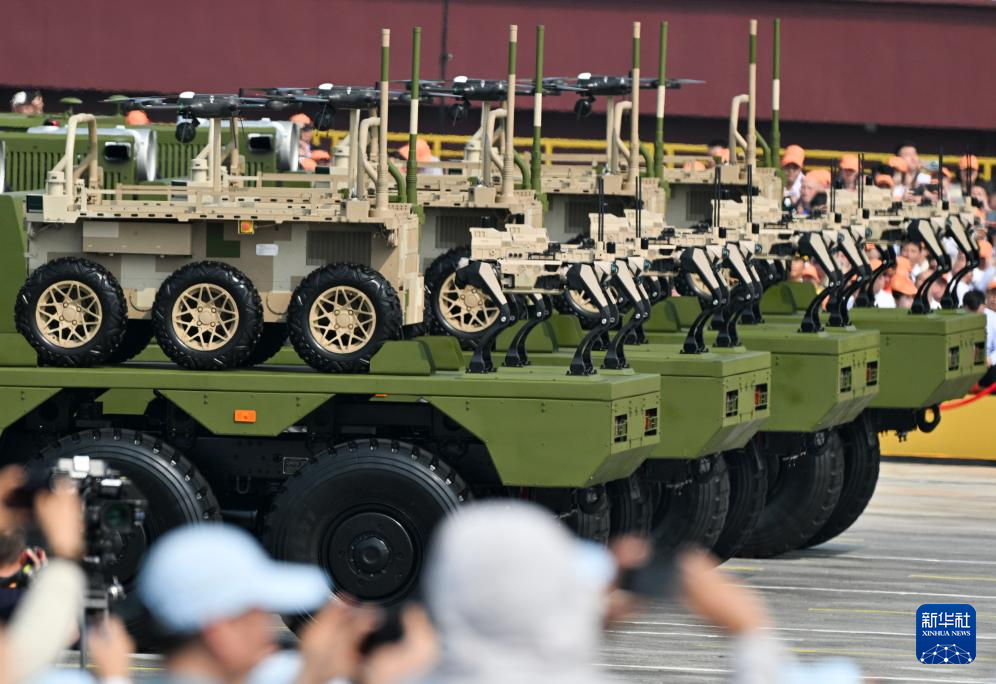 9月3日,紀(jì)念中國(guó)人民抗日戰(zhàn)爭(zhēng)暨世界反法西斯戰(zhàn)爭(zhēng)勝利80周年大會(huì)在北京隆重舉行。這是陸上無(wú)人作戰(zhàn)方隊(duì)通過(guò)天安門(mén)廣場(chǎng)。