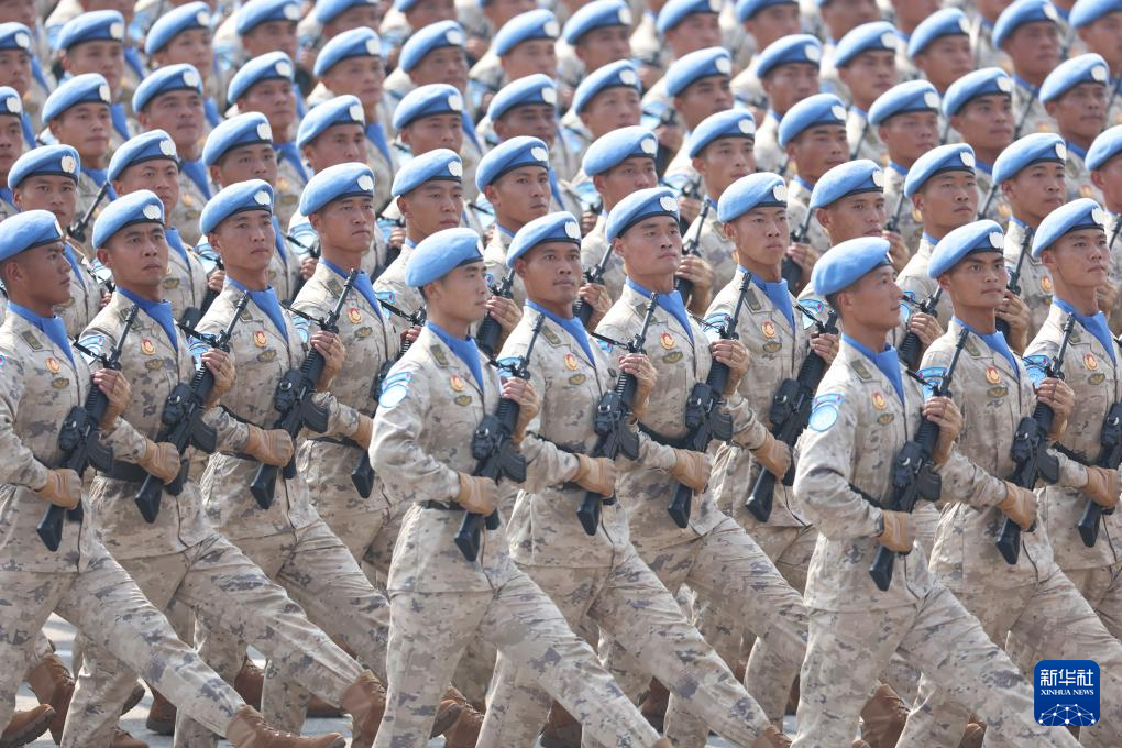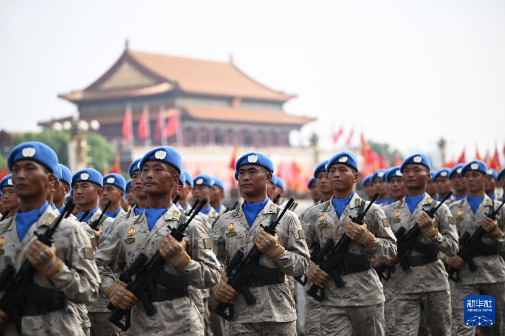9月3日,紀(jì)念中國(guó)人民抗日戰(zhàn)爭(zhēng)暨世界反法西斯戰(zhàn)爭(zhēng)勝利80周年大會(huì)在北京隆重舉行。這是維和部隊(duì)方隊(duì)接受檢閱。