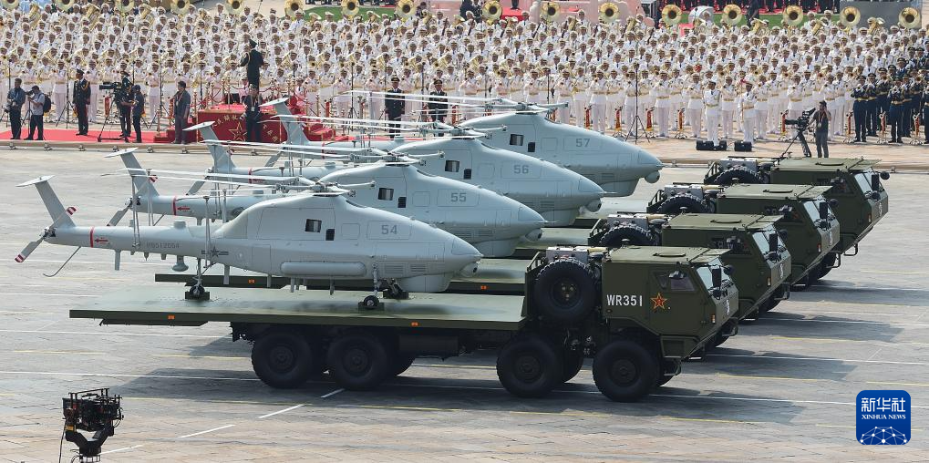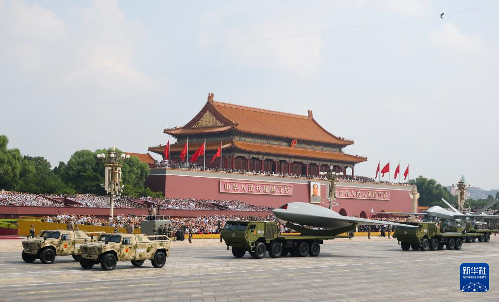 9月3日,紀(jì)念中國(guó)人民抗日戰(zhàn)爭(zhēng)暨世界反法西斯戰(zhàn)爭(zhēng)勝利80周年大會(huì)在北京隆重舉行。這是空中無(wú)人作戰(zhàn)方隊(duì)接受檢閱。