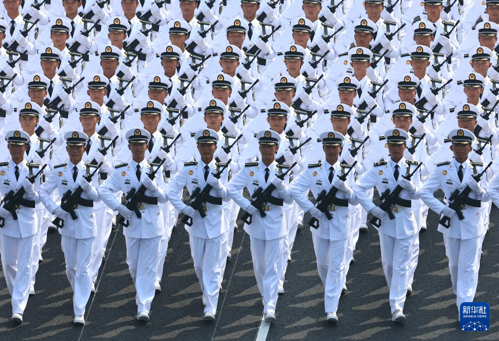 9月3日,紀(jì)念中國(guó)人民抗日戰(zhàn)爭(zhēng)暨世界反法西斯戰(zhàn)爭(zhēng)勝利80周年大會(huì)在北京隆重舉行。這是海軍方隊(duì)接受檢閱。
