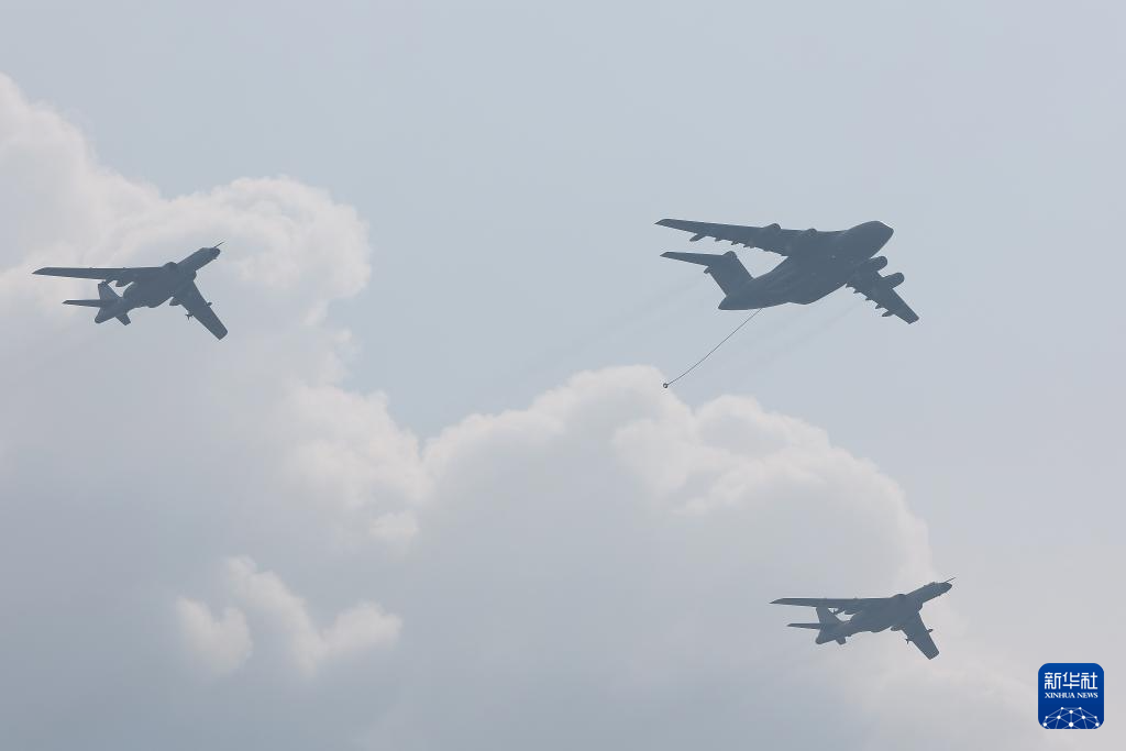 9月3日,紀(jì)念中國(guó)人民抗日戰(zhàn)爭(zhēng)暨世界反法西斯戰(zhàn)爭(zhēng)勝利80周年大會(huì)在北京隆重舉行。這是加受油機(jī)梯隊(duì)。