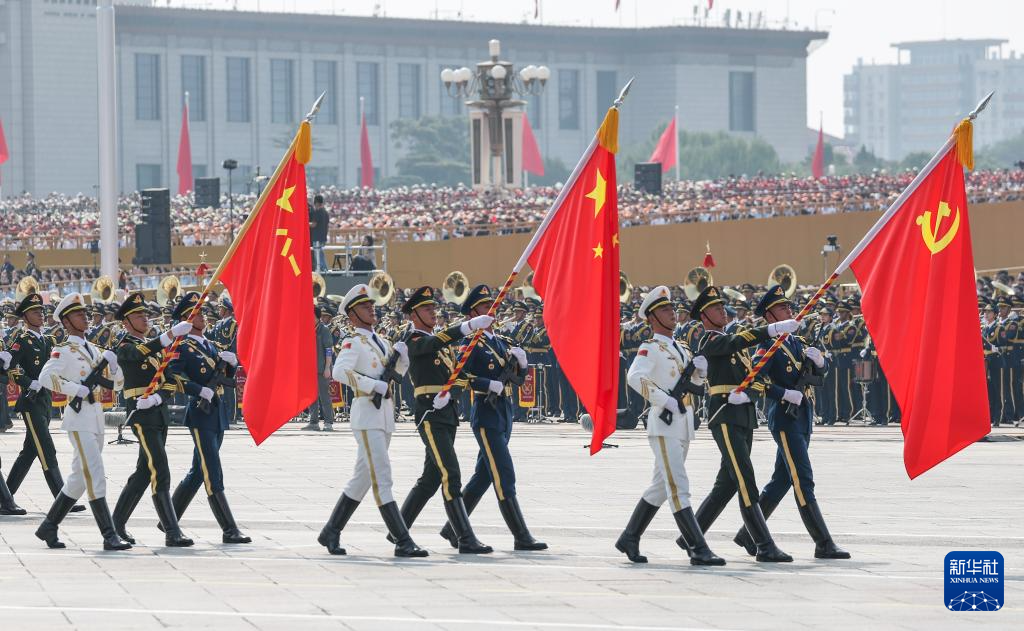 9月3日,紀(jì)念中國(guó)人民抗日戰(zhàn)爭(zhēng)暨世界反法西斯戰(zhàn)爭(zhēng)勝利80周年大會(huì)在北京隆重舉行。這是戰(zhàn)旗方隊(duì)接受檢閱。