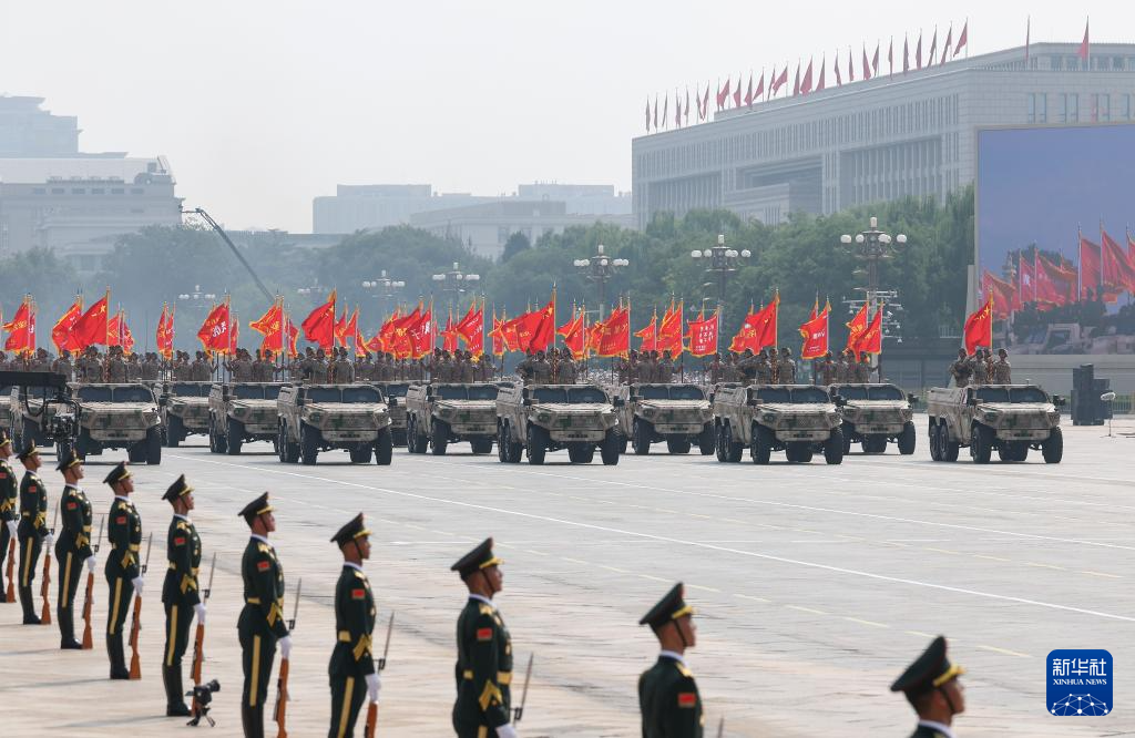9月3日,紀(jì)念中國(guó)人民抗日戰(zhàn)爭(zhēng)暨世界反法西斯戰(zhàn)爭(zhēng)勝利80周年大會(huì)在北京隆重舉行。這是徒步方隊(duì)接受檢閱。