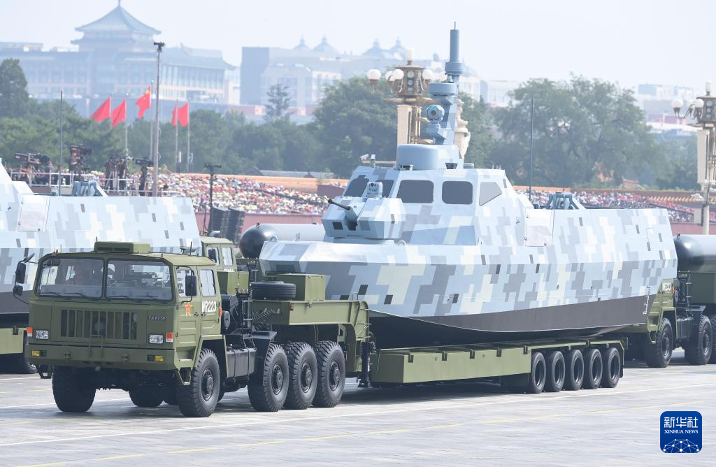 9月3日,紀(jì)念中國(guó)人民抗日戰(zhàn)爭(zhēng)暨世界反法西斯戰(zhàn)爭(zhēng)勝利80周年大會(huì)在北京隆重舉行。這是海上無(wú)人作戰(zhàn)方隊(duì)通過(guò)天安門(mén)廣場(chǎng)。