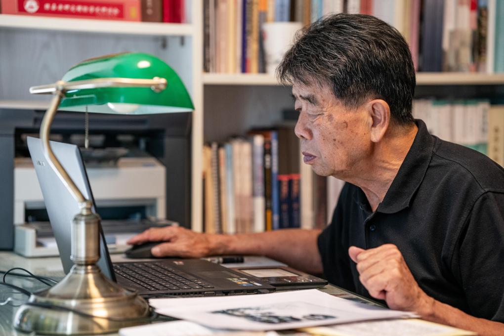 2025年7月17日,張云鵬在書房整理南僑機工相關資料。
