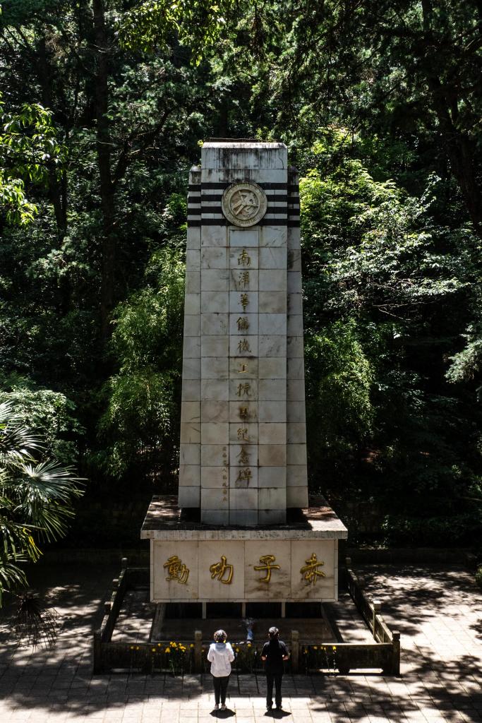 2022年11月2日,民眾在昆明西山的南洋華僑機工抗日紀念碑前獻花。 新華社記者 江文耀 攝