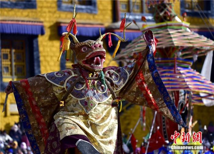 2025年2月27日是藏歷十二月二十九,西藏拉薩楚布寺舉行“羌姆”(跳神)活動,以驅邪送崇、祈福禳災,同時表達對藏歷木蛇新年的美好祈愿。中新社記者 李林 攝