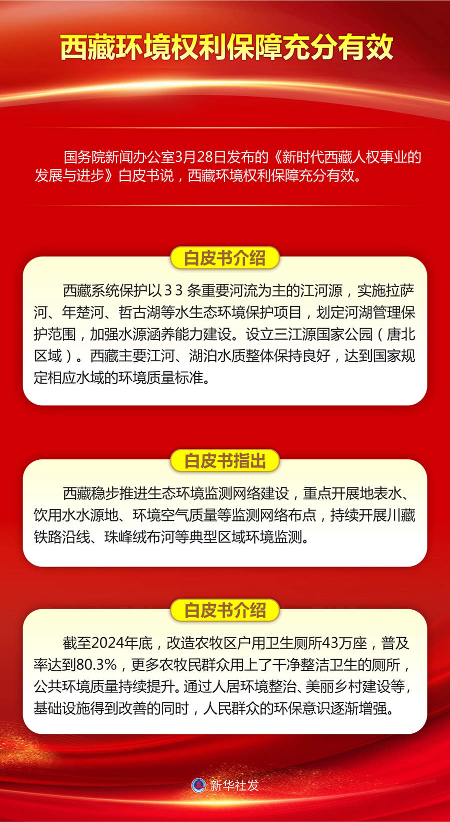 國務院新聞辦公室28日發(fā)布的《新時代西藏人權事業(yè)的發(fā)展與進步》白皮書說,西藏環(huán)境權利保障充分有效。