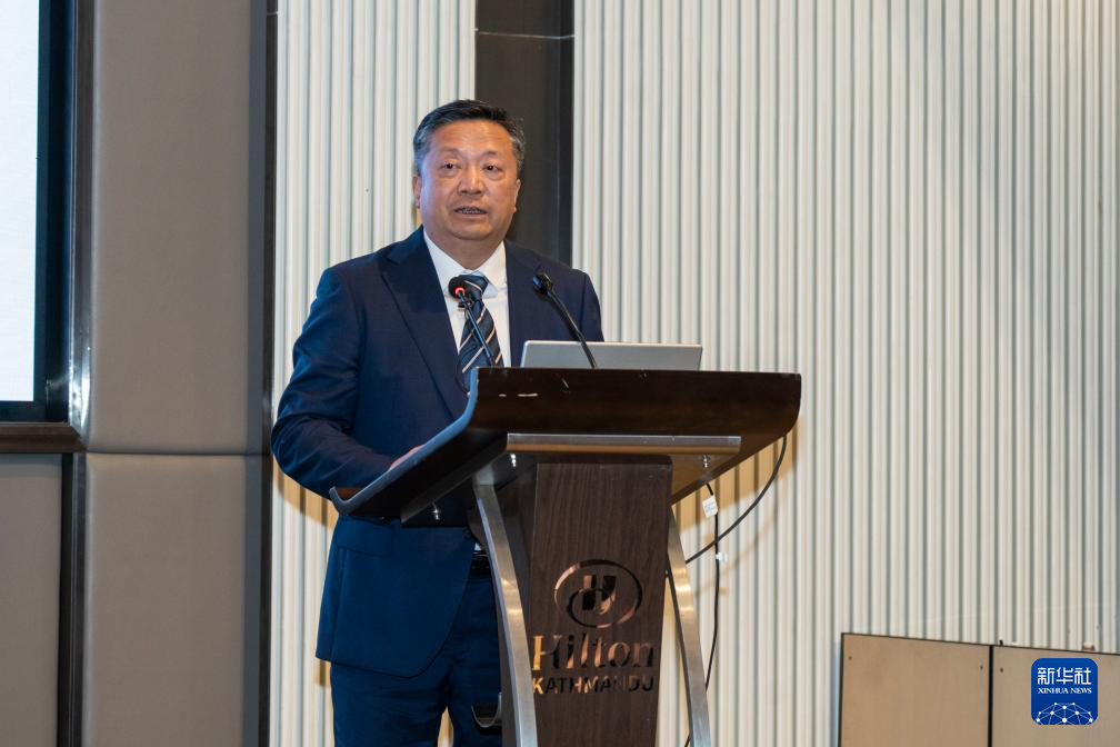 6月24日,一名中國(guó)藏學(xué)家在尼泊爾加德滿(mǎn)都舉辦的交流會(huì)上發(fā)言。新華社發(fā)(哈里·馬哈爾詹攝)
