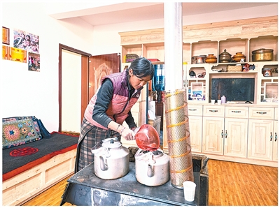 次仁普尺點頭說:“更方便了,以前要隔一段時間去縣里洗澡,現(xiàn)在家里就能洗;以前做飯要去外面打水,現(xiàn)在廚房擰開水龍頭就能用水,省了不少事?!?/p>