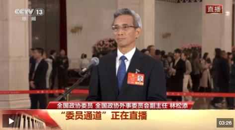 今天(3月4日)下午,全國政協(xié)十四屆三次會議首場“委員通道”在人民大會堂舉行,全國政協(xié)委員、全國政協(xié)外事委員會副主任林松添接受了記者采訪。