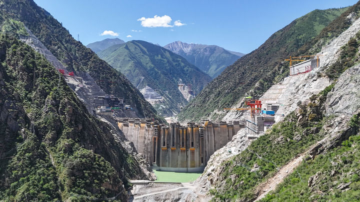 這是2025年6月30日拍攝的建設(shè)中的葉巴灘水電站(無(wú)人機(jī)照片)。該水電站地處四川甘孜州白玉縣與西藏昌都市貢覺(jué)縣交界處的金沙江上游,總裝機(jī)容量224萬(wàn)千瓦。新華社發(fā)(陳浩 攝)