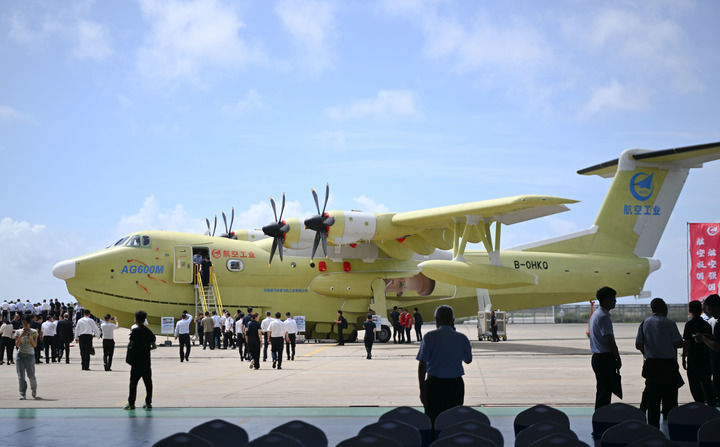 2025年6月11日在珠海中航通飛華南飛機(jī)工業(yè)有限公司拍攝的批量生產(chǎn)的首架AG600飛機(jī)。當(dāng)日,大型水陸兩棲飛機(jī)AG600“鯤龍”獲頒中國(guó)民航局生產(chǎn)許可證,標(biāo)志著AG600飛機(jī)正式邁入批量生產(chǎn)階段。新華社記者 鄧華 攝