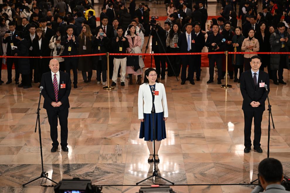 3月4日,全國政協(xié)十四屆四次會(huì)議首場“委員通道”集體采訪活動(dòng)在北京人民大會(huì)堂舉行。新華社記者 曹祎銘 攝