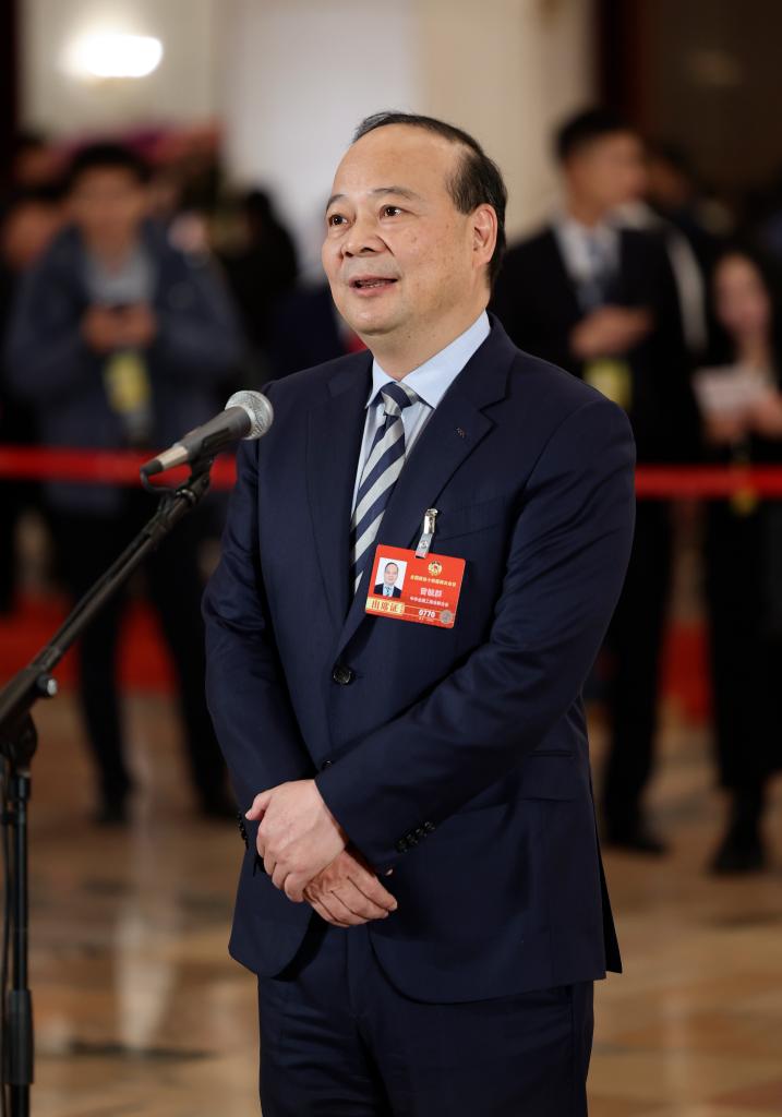 3月4日,全國政協(xié)十四屆四次會(huì)議首場“委員通道”集體采訪活動(dòng)在北京人民大會(huì)堂舉行。這是全國政協(xié)委員曾毓群接受媒體采訪。新華社記者 盧燁 攝