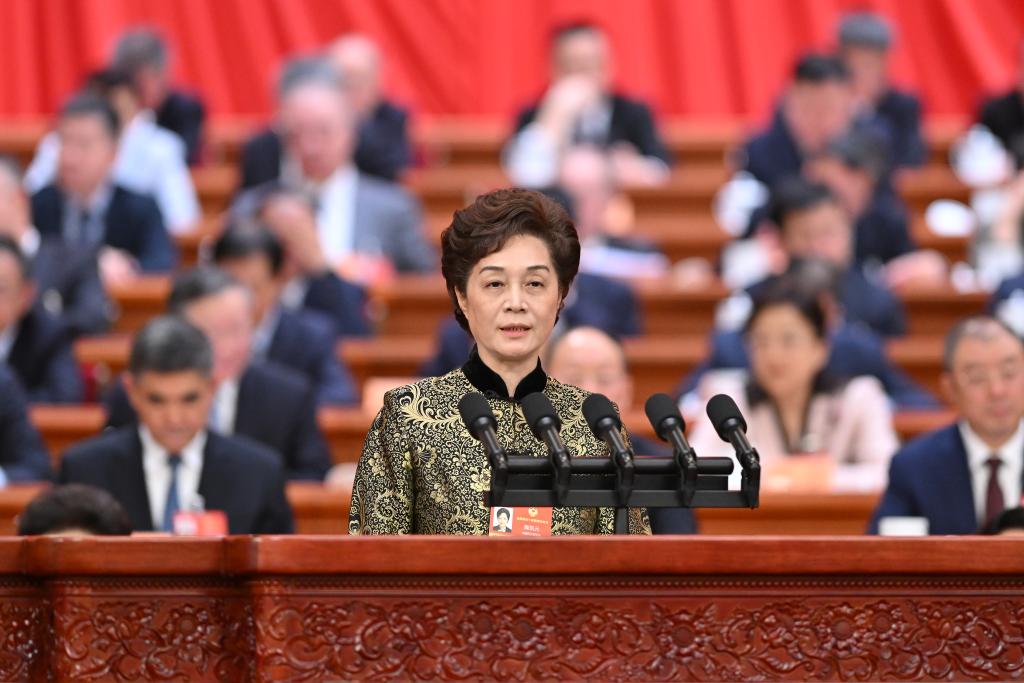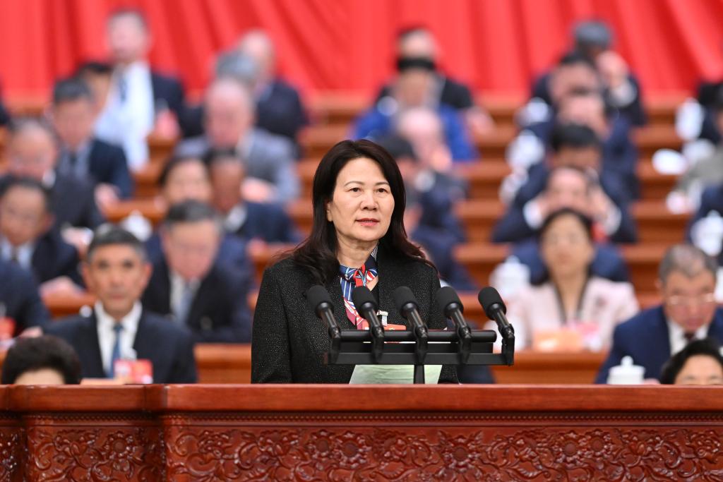 3月7日,全國政協(xié)十四屆四次會(huì)議在北京人民大會(huì)堂舉行第二次全體會(huì)議。這是賀丹委員作題為《優(yōu)化生育支持政策和激勵(lì)措施 構(gòu)建積極生育保障體系》的發(fā)言。新華社記者 岳月偉 攝