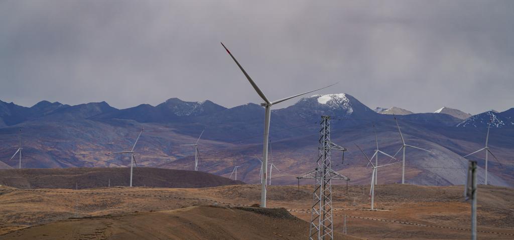 位于西藏日喀則市薩迦縣的風力發(fā)電機組。新華社記者 晉美多吉 攝