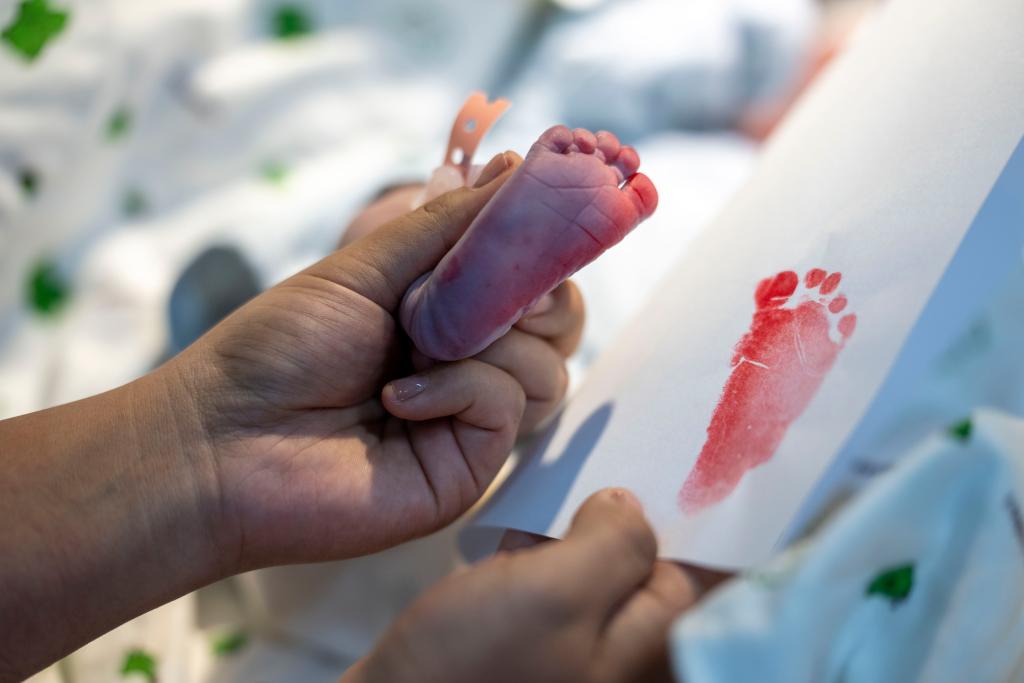 2026年1月1日,西藏自治區(qū)人民醫(yī)院婦產科助產醫(yī)生次拉為新生兒印腳印。新華社記者 旦增尼瑪曲珠 攝